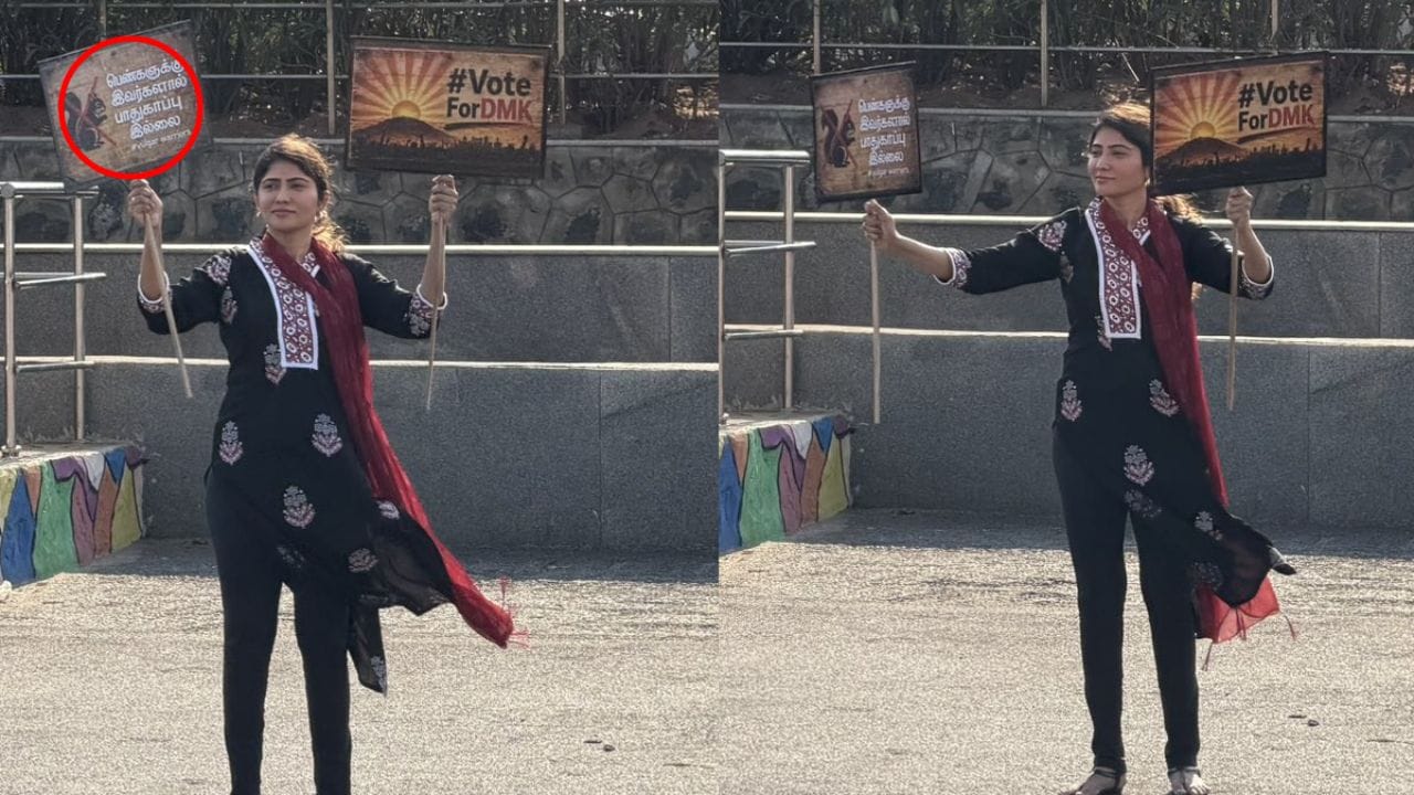 இந்த நிலையில், சின்னத்திரை நடிகை ஜூலி நேற்று சென்னை மெரினா கடற்கரையில் அவ்வையார் சிலை பின்புறம் சர்வீஸ் சாலையில் திடீரென அனுமதி இன்றி போராட்டத்தில் ஈடுபட்டார். அப்போது, தனது கைகளில் திமுகவுக்கு ஆதரவாகவும், தமிழக வெற்றி கழகத்திற்கு எதிர்ப்பாகவும் பேனர்களை கையில் வைத்துக்கொண்டு போராட்டத்தை நடத்தி வந்தார். அவருடன் 3 பேர் போராட்டத்தில் ஈடுபட்டிருந்தனர். ஜூலி வைத்திருந்த பதாகையில் திமுகவுக்கு வாக்களியுங்கள் என்ற வாசகம் குறிப்பிடப்பட்டிருந்தது. மற்றொரு பதாகையில் அணில் படம் பொறிக்கப்பட்டு அதன் மீது எக்ஸ் குறி குறிக்கப்பட்டிருந்தது.