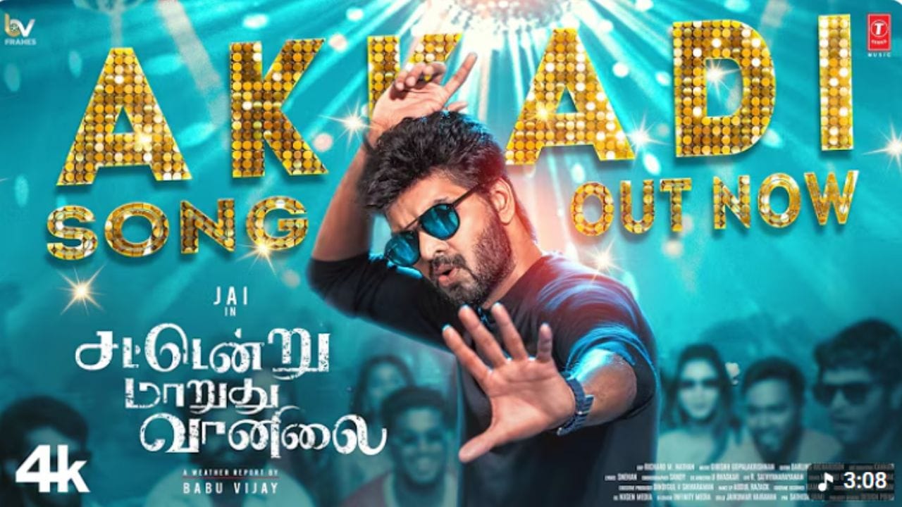 அதன்படி நடிகர் ஜெய் நடிப்பில் தற்போது உருவாகி உள்ள படம் சட்டென்று மாறுது வானிலை படம். இந்தப் படத்தை இயக்குநர் ஏ.ஆர்.முருகதாஸிடம் உதவி இயக்குநராகப் பணியாற்றிய பாபு விஜய் இயக்கி உள்ளார். இந்தப் படத்தின் மூலமாக இவர் இயக்குநராக அறிமுகம் ஆனார் என்பது குறிப்பிடத்தக்கது. இந்தப் படத்தில் இருந்து அக்கடி என்ற பாடலின் லிரிக்கள் வீடியோவைப் படக்குழு தற்போது வெளியிட்டுள்ளது. இந்தப் பாடலை இசையமைப்பாளரும் பாடகருமான தேவா இந்தப் பாடலைப் பாடியுள்ளார் என்பது குறிப்பிடத்தக்கது.