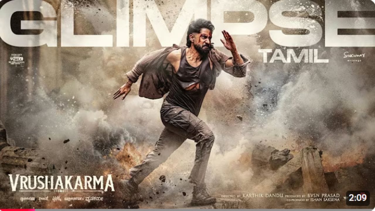 இயக்குநர் கார்த்திக் தண்டு எழுதி இயக்கி உள்ள படம் வ்ருஷகர்மா. இந்தப் படத்தில் நடிகர் நாக சைத்தன்யா நாயகனாக நடித்துள்ள நிலையில் நடிகை மீனாட்சி சௌத்ரி நாயகியாக நடித்துள்ளார். இவர்களுடன் இணைந்து நடிகர்கள் ஜெயராம், ஸ்பர்ஷ் ஸ்ரீவஸ்தவா, சத்யா ஆகியோர் முக்கிய வேடங்களில் நடித்துள்ளனர். தெலுங்கு சினிமாவில் உருவாகி உள்ள நிலையில் தற்போது இந்தப் படத்தின் க்ளிம்ஸ் வீடியோவை பான் இந்திய மொழிகளில் படக்குழு தற்போது வெளியிட்டுள்ளது. அது ரசிகர்களிடையே கவனத்தை ஈர்த்து வருகின்றது.