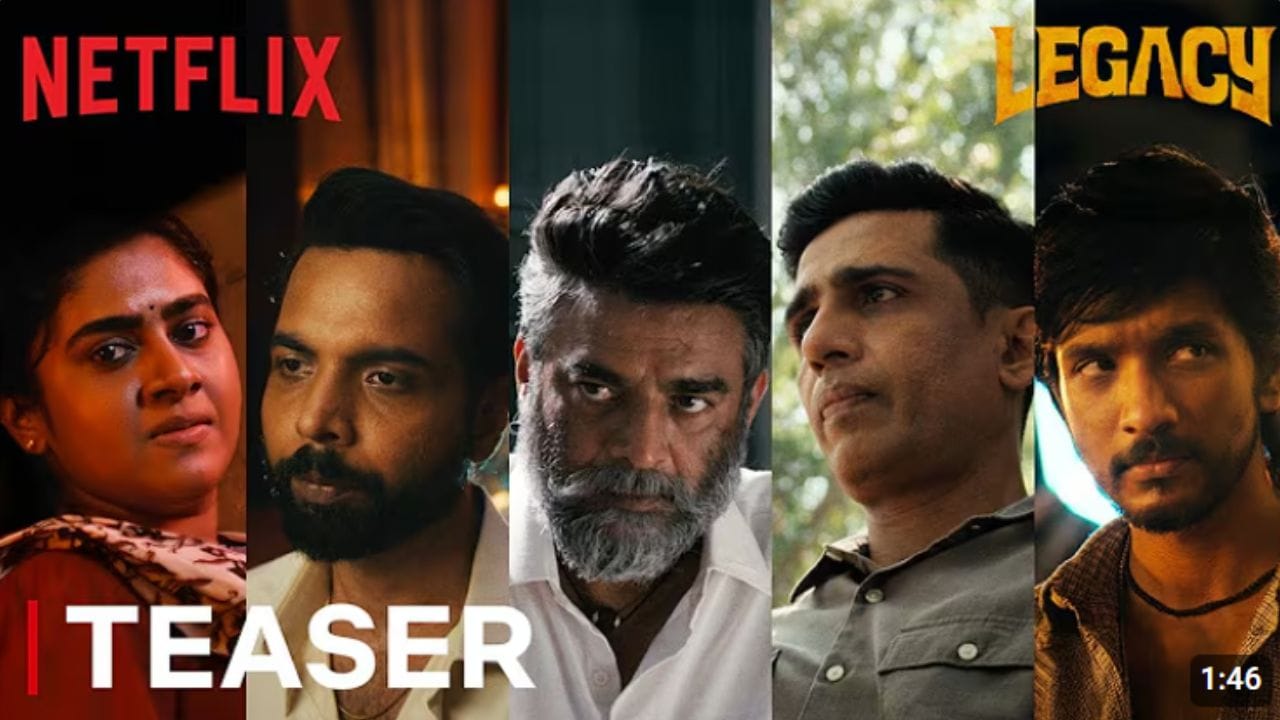 இந்த நிலையில் பொலிட்டிகள் ட்ராமா பாணியில் தற்போது நெட்ஃபிளிக்ஸ் ஓடிடி தளம் தயாரித்துள்ள இணையதள தொடர் லெகசி. இந்த தொடர் தமிழ், தெலுங்கு, மலையாளம், கன்னடம் மற்றும் இந்தி ஆகிய மொழிகளில் வெளியாக உள்ளது. மேலும் இந்த தொடரில் நடிகர்கள் ஆர். மாதவன், நிமிஷா சஜயன், குல்ஷன் தேவையா, அபிஷேக் பானர்ஜி, கௌதம் ராம் கார்த்திக் ஆகியோர் முக்கிய வேடங்களில் நடித்துள்ளனர். மேலும் இந்த தொடரை இயக்குநர் சாருகேஷ் சேகர் எழுதி இயக்கி உள்ள நிலையில் பிரபல தயாரிப்பு நிறுவனமான ஸ்டோன் பெஞ்ச் ஸ்டூடியோ தயாரித்துள்ளது. இந்த நிலையில் இந்த லெகசி இணையதள தொடரின் டீசரை வெளியிட்டுள்ள நிலையில் அது ரசிகர்களிடையே கவனத்தை ஈர்த்து வருகின்றது.