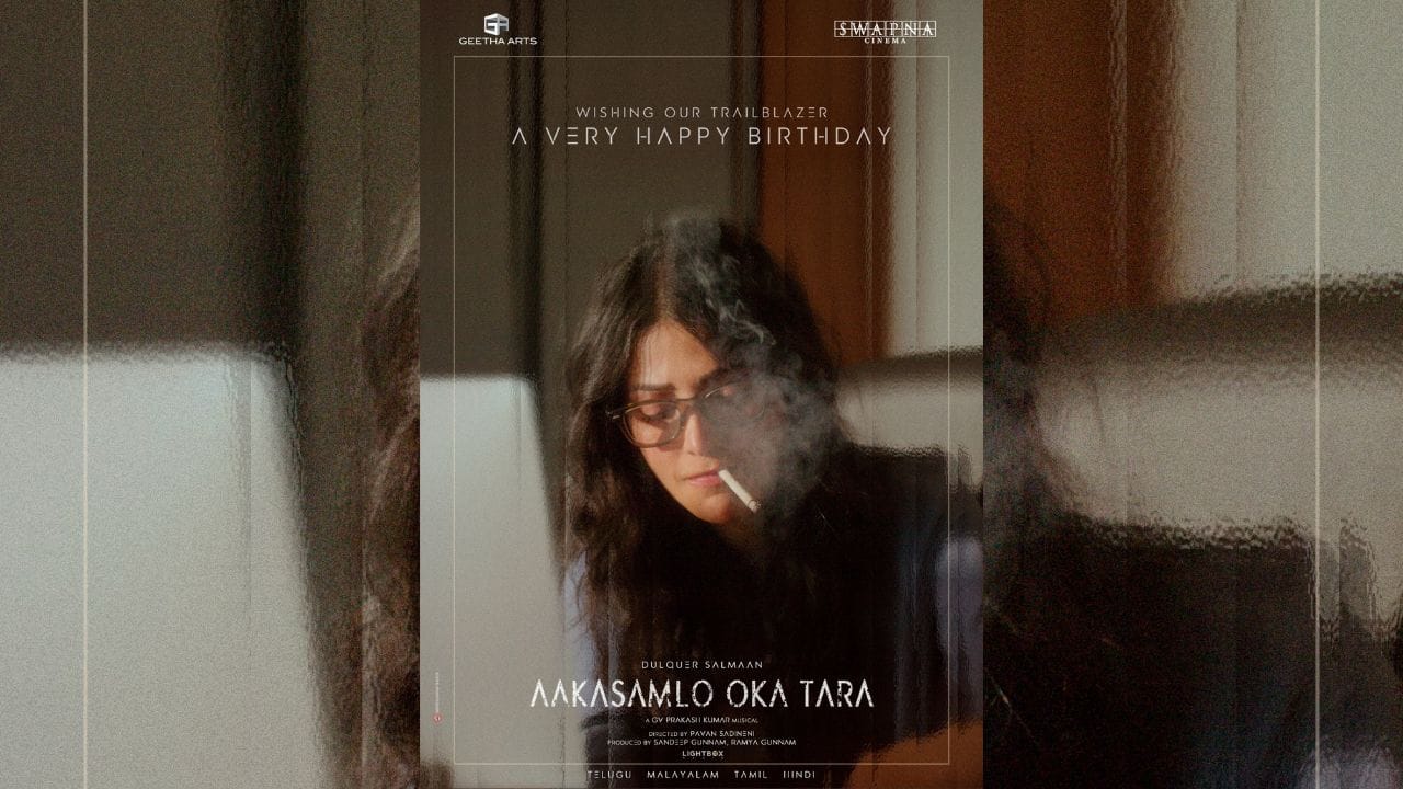இந்த நிலையில் நடிகை ஸ்ருதி ஹாசன் இன்று ஜனவரி மாதம் 28-ம் தேதி 2026-ம் ஆண்டு தனது 40-வது பிறந்த நாளை கொண்டாடி வருகின்றார். இந்த நிலையில் இவர் தெலுங்கு சினிமாவில் நடிகர் துல்கர் சல்மான் நாயகனாக நடித்து வரும் ஆகாசம்லோ ஓக தாரா படத்தில் முக்கிய வேடத்தில் நடித்து வருகிறார் நடிகை ஸ்ருதி ஹாசன். இந்த நிலையில் படக்குழுவினர் ஸ்ருதி ஹாசனுக்கு பிறந்த நாள் வாழ்த்து கூறி போஸ்டரை வெளியிட்டுள்ளது. இது தற்போது இணையத்தில் ரசிகர்களீடையே கவனத்தை ஈர்த்து வருகின்றது.