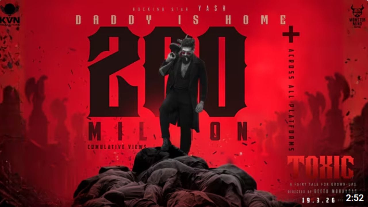 மேலும் இந்தப் படத்தில் நடிகர் யாஷ் உடன் இணைந்து நடிக்கும் நடிகர்களின் கதாப்பாத்திர போஸ்டர் வெளியாகி ரசிகர்களிடையே கவனத்தை ஈர்த்தது. இந்த நிலையில் நடிகர் யாஷின் கதாப்பாத்திர அறிமுக வீடியோவை நேற்று படக்குழு வெளியிட்டு இருந்தது. இந்த வீடியோ தற்போது யூடியூபில் 200 மில்லியன் பார்வைகளைப் பெற்றுள்ளது என படக்குழு அதிகாரப்பூர்வமாக அறிவித்து இருந்தது.