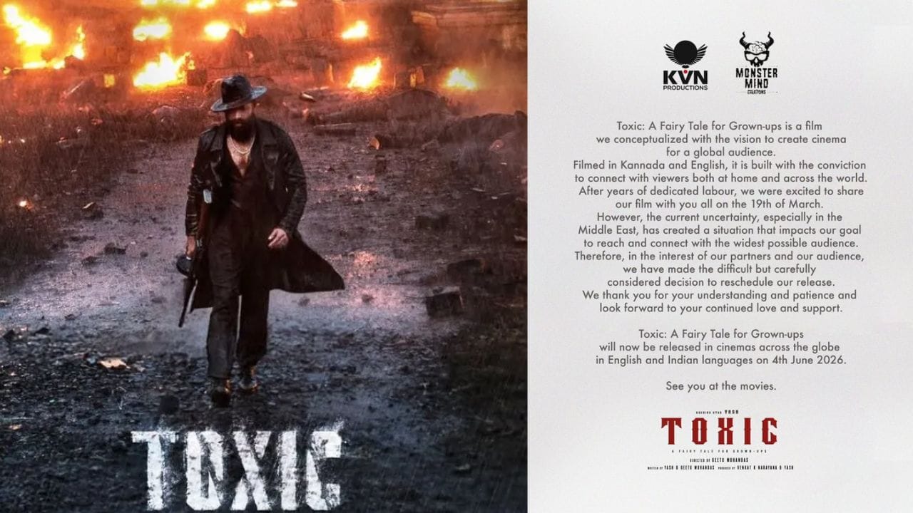 டாக்ஸிக் படம் உலகளாவிய பார்வையாளர்களுக்கான சினிமாவை உருவாக்க வேண்டும் என்ற தொலைநோக்குப் பார்வையுடன் நாங்கள் உருவாக்கிய படம். கன்னடம் மற்றும் ஆங்கிலத்தில் படமாக்கப்பட்ட இந்தப் படம் உலக அளவில் உள்ள பார்வையாளர்களிடம் சென்றடைய வேண்டும் என்று எடுக்கப்பட்டது. மார்ச் 19 ஆம் தேதி படத்தை வெளியிடுவதாக தெரிவித்ததில் நாங்கள் மிகவும் மகிழ்ச்சியாக இருந்தோம். ஆனால் தற்போது மத்திய கிழக்கில் நிலவும் போர் சூழல் காரணமாக படத்தின் வெளியீட்டை தள்ளி வைக்க முடிவு செய்துள்ளோம். இது ரசிகர்களின் நலனுக்காக செய்யும் விசயம். மேலும் டாக்ஸிக் படம் வருகின்ற ஜூன் மாதம் 04-ம் தேதி 2026-ம் ஆண்டு உலகம் முழுவதும் திரையரங்குகளில் வெளியாகும் என்றும் அந்தப் பதிவில் தெரிவிக்கப்பட்டுள்ளது.