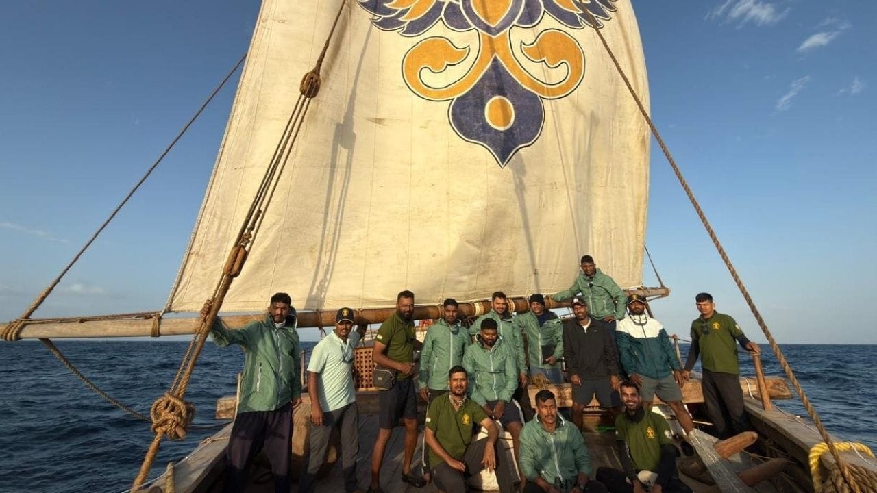 இந்தியாவுக்கான ஓமன் தூதர் இசா சலே அல் ஷிபானி முன்னிலையில், போர்பந்தரைச் சேர்ந்த மேற்கு கடற்படை கட்டளையின் கொடி அதிகாரி தளபதி வைஸ் அட்மிரல் கிருஷ்ண சுவாமிநாதன், திங்கள்கிழமை ஐஎன்எஸ்வி கவுண்டின்யாவை கொடியசைத்து தொடங்கி வைத்தார்.