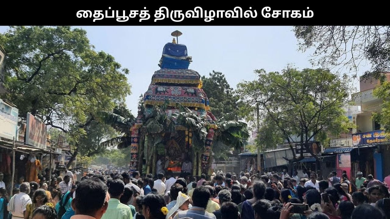 தூத்துக்குடி, பிப்ரவரி 02: தூத்துக்குடி மாவட்ட தைப்பூசத்தையொட்டி, நடந்த தேர்த் திருவிழாவில் தேர் சக்கரங்களுக்கு அடியில் மரக்கட்டைகளை வைக்கும் பணிகளே மேற்கொண்ட ஒருவர் தேரின் சக்கரத்தில் சிக்கி உயிரிழந்த சம்பவம் சோகத்தை ஏற்படுத்தியுள்ளது. தமிழகம் முழுவதும் நேற்றைய தினம் தைப்பூசம் கோலாகலமாக கொண்டாடப்பட்டது. இதையொட்டி, நேற்று காலை முதலே முருகன் கோயில்களில் சிறப்பு அபிஷேகங்களும், வழிபாடுகளும், பூஜைகளும் நடைபெற்றன. குறிப்பாக, முருகப்பெருமானின் அறுபடை வீடுகளான திருப்பரங்குன்றம், திருச்செந்தூர், பழனி, மருதமலை, திருத்தணி, பழமுதிர்ச் சோலைகள் ஆகிய இடங்கள் தைப்பூசத்தை முன்னிட்டு விழாக்கோலம் பூண்டு காணப்பட்டது. இதையொட்டி, தமிழ்நாடு முழுவதும் உள்ள முருகன் கோயில்களில் பக்தர்கள் காவடி எடுத்தும், அலகு குத்தியும் தங்களது நேர்த்திக்கடனை செலுத்தி வழிபட்டனர்.