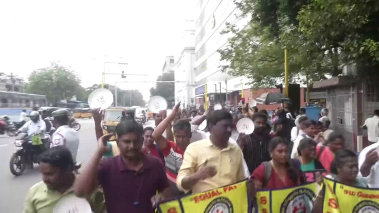 சம ஊதியம் கோரி இடைநிலை ஆசிரியர்கள் மாநிலம் தழுவிய போராட்டத்தில் ஈடுபட்டுள்ள நிலையில், சென்னையில் இடைநிலை ஆசிரியர் சங்கத்தினர் தலைவர்கள் வீட்டுக் காவலில் வைக்கப்பட்டனர். இதனை தொடர்ந்து, முதலமைச்சர் மு.க. ஸ்டாலின் தலைமையிலான திமுக அரசு மீது கடுமையான விமர்சனத்தை முன்வைத்து வருகின்றனர்.