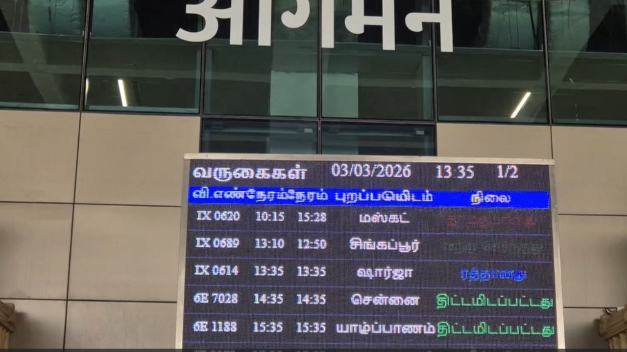 ஈரான் மீது இஸ்ரேல் மற்றும் அமெரிக்கா தாக்குதல் நடத்தி வரும் நிலையில், சர்வதேச அளவில் விமான சேவை பாதிக்கப்பட்டுள்ளது. அந்த வகையில் திருச்சி விமான நிலையத்தில் இருந்து வளைகுடா நாடுகளுக்கு செல்லும் விமானங்களுக்கான சேவையும் பாதிக்கப்பட்டுள்ளது. இதன் காரணமாக பொதுமக்களும் மிக கடுமையான சவால்களை எதிர்கொண்டுள்ளனர்.