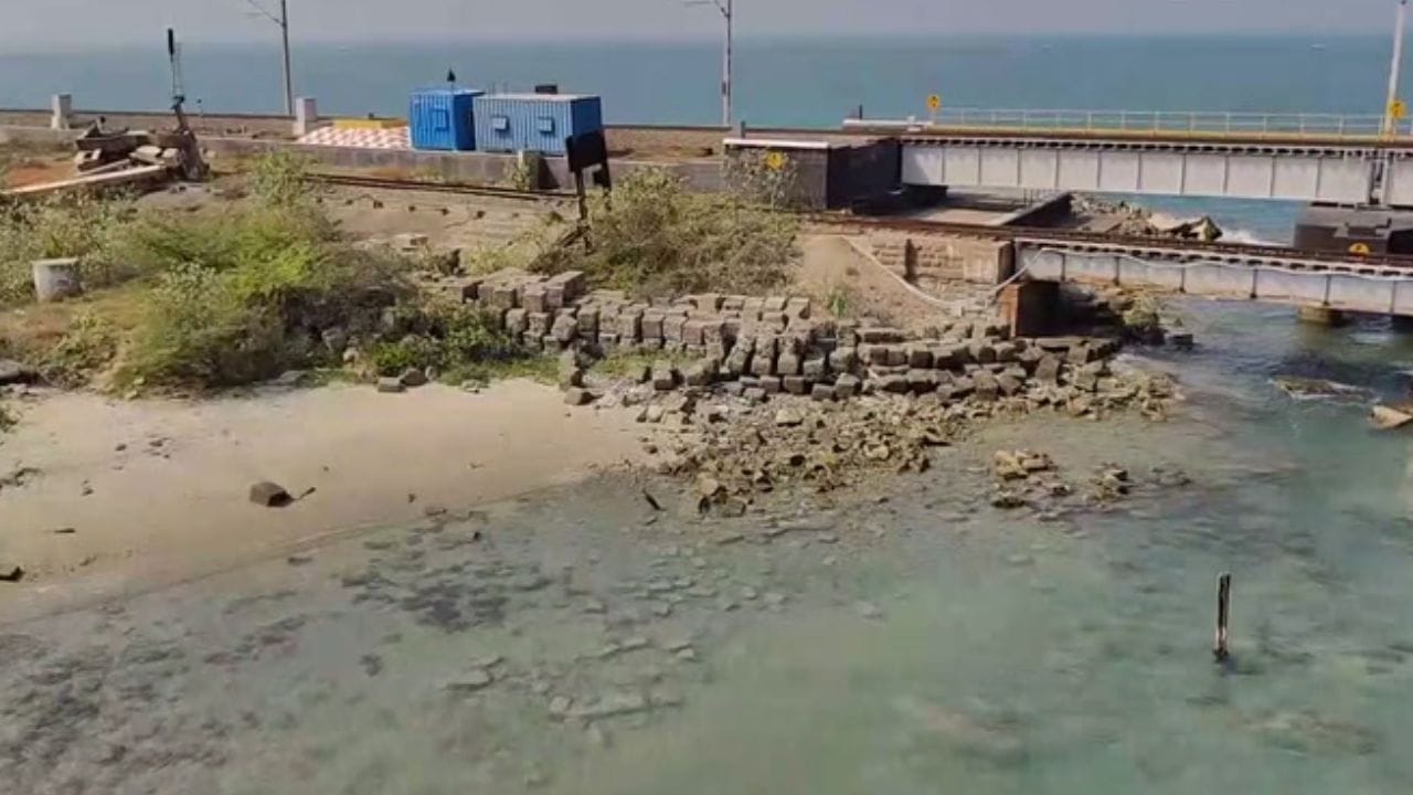 பாம்பனில் பழைய ரயில் பாலத்தை அகற்றும் பணி..! பணியின்போது கிரேன் கவிழ்ந்து விபத்து!