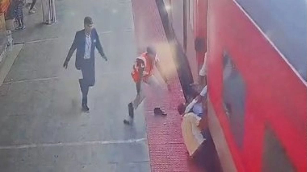 ரயிலில் இருந்து தவறி விழுந்த சிறுவனை பாதுகாப்பாக மீட்ட ரயில்வே காவலர்கள் – குவியும் பாராட்டு