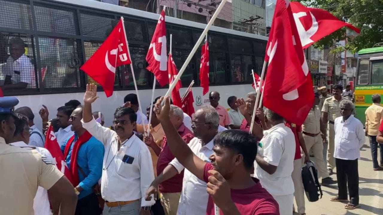4 தொழிலாளர்கள் குறியீடு சட்டம்.. எதிர்ப்பு தெரிவித்து தொழிலாளர்கள் கைது!