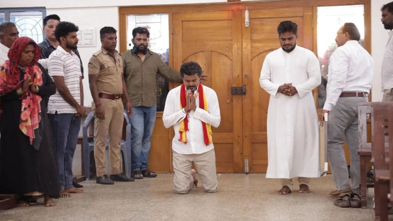 'தமிழக வெற்றிக் கழகம்' (TVK) கட்சியின் தலைவர் விஜய், இன்று திருச்சியில் உள்ள வயர்லெஸ் சாலையில் அமைந்துள்ள புனித அந்தோணியார் ஆலயத்திற்குச் சென்று, முட்டி போட்டப்படி நடந்து பிரார்த்தனை செய்தார். ஒரு தேவாலயத்திற்குள் பிரார்த்தனை செய்வதற்காக விஜய் முழங்காலிட்டு நடந்து செல்லும் காணொளி ஒன்று சமூக ஊடகங்களில் பரவி வருகிறது. இதனை தொடர்ந்து, மசூதிக்கும், அம்மன் கோயிலுக்கும் சென்று வழிபாடு செய்தார் விஜய்.