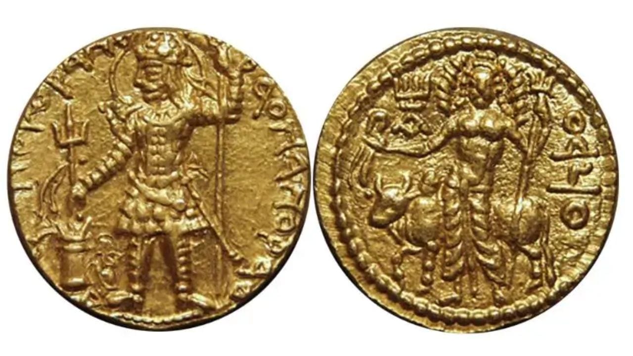 Kushan Empire Coins : பாகிஸ்தானில் 2 ஆயிரம் ஆண்டுகள் பழைமையான வெண்கல நாணயங்கள் கண்டெடுக்கப்பட்டுள்ளன. இந்த நாணயங்கள் குஷா ன பேரரசு காலத்தை சேர்ந்தது என்பது ஆராய்ச்சியில் தெரியவந்துள்ளது. இந்த நாணயத்தில் இரு புறங்களிலும் இரு உருவங்கள் பொறிக்கப்பட்டுள்ளன .